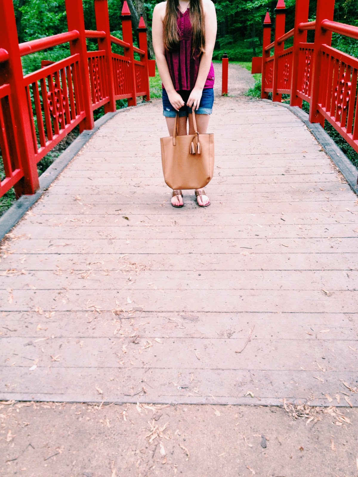 This summer I am trying to explore my town more. I am trying new cafes, exploring bookstores, and finding new locations to shoot outfit pictures at! I knew there was a bridge like this at this park, and I got lost trying to find it at first… but I finally made it and was able to get my outfit shot. I am loving this Old Navy tassel tote that I bought a few months back. It is perfect when my cross body bags aren’t big enough and I need more space.